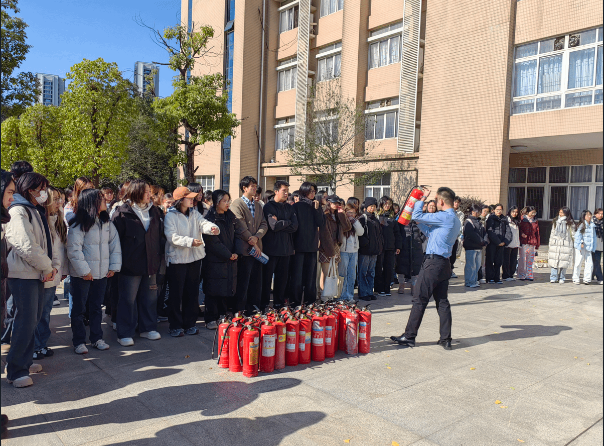 本网讯 为进一步增强全院师生的消防安全意识,提升应对突发火情的自救互救能力,11月18日,我院精心组织了一场涵盖消防安全讲座、技能培训与应急疏散演练的系列安全教育活动。本次活动以“全民消防、生命至上—安全用火用电”为主题,旨在将理论知识与实践操作紧密结合,全面夯实校园安全基础。活动特邀武汉顺防安消防服务中心高级教员陈意担任主讲,学院师生共同参与,学校保卫处全程提供支持与配合。