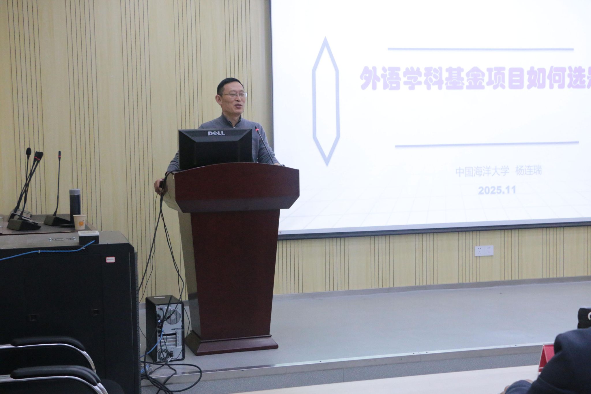 武科大网讯(通讯员孙盼盼 姚刚)为助力外国语学院师生精准把握外语学科基金项目申报方向,11月28日下午16:00,我院特别邀请中国海洋大学杨连瑞教授在学院42305报告厅作了题为“外语学科基金项目如何选题”的专题讲座。院长李金云、副院长龙在波、MTI教育中心常务副主任姚刚、部分学院科研骨干、2025级全体研究生参加了此次讲座。讲座由副院长龙在波主持。