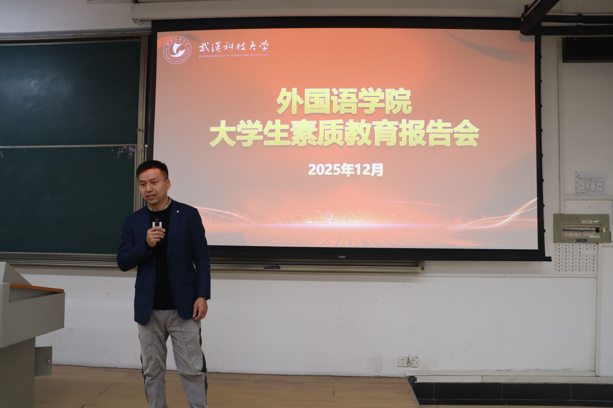 下午的报告会上,三位校友与2025级本科生围绕综合素质培养与职业发展展开深入交流。代永强结合外贸行业实践经验,分析了外语人才的持续市场需求,建议同学们通过辅修第二外语、考取专业八级等方式增强核心竞争力。吴志明分享了从外语专业成功跨入光电科技领域的经历,强调语言基础为跨领域发展提供独特优势。徐佳云则从创业视角出发,提醒同学们在专注学业的同时,积极参与社会实践,全面提升综合素养。