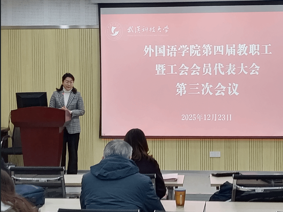 最后,学院党委书记郑娟致闭幕词。她代表学院党委对大会的圆满成功表示祝贺,对全体代表的辛勤付出表示感谢。郑娟书记强调,本次大会是一次民主团结、求真务实、凝心聚力、共谋发展的大会。她要求,全院上下要认真学习宣传贯彻大会精神,紧紧围绕学院“十五五”规划发展目标,以翻译博士专业学位授权点突破为牵引,以冶金科技翻译、荆楚文化国际传播、国际中文教育等为学科增长点,进一步深化教育教学改革,提升科研创新能力,优化人才培养模式,以高质量党建引领学院高质量内涵式发展。她呼吁全体教职工,永葆主人翁本色,以双语融通的视野、立德树人的担当,为绘就学院事业蓬勃发展的宏伟蓝图贡献力量。