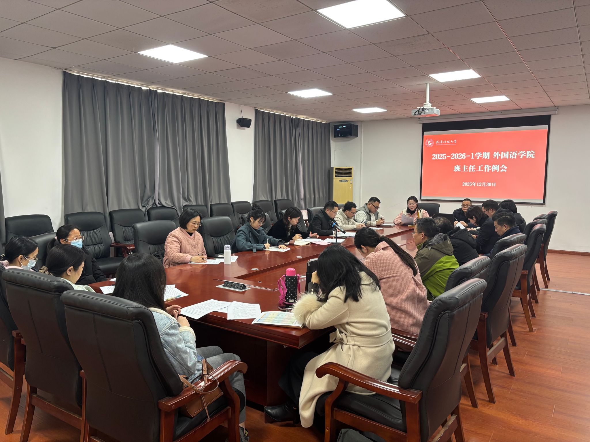 本网讯(通讯员 吴晨晨)12月30日下午,英国上市365官网在42404会议室组织召开班主任工作会议。学院党委书记郑娟、党委副书记彭小波、各年级辅导员及全体班主任共同参会,会议由学院党委副书记彭小波主持。