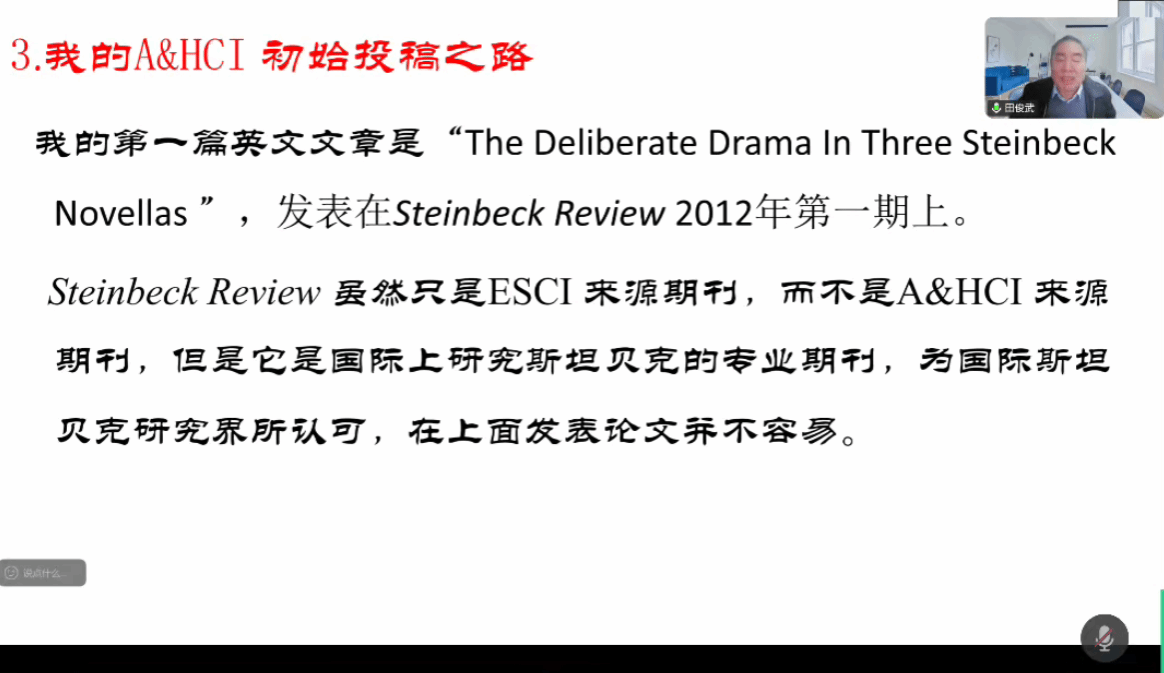 首场报告题为“怎样在国际SSCI/A&HCI来源期刊发表学术文章?”。田俊武教授立足自身长期的SSCI/A&HCI论文写作与投稿实践经验,聚焦人文社科青年学者在国际期刊发表过程中普遍面临的选题凝练、期刊匹配、投稿策略与审稿应对等难点问题,系统比较三大期刊检索系统的差异与使用要点,并结合个人真实投稿历程,梳理从选题、写作、投稿到修改与发表的全过程“实战路径”,分享常规写作与投稿指南中较少涉及的关键技巧,为参会师生提供了具有可操作性的“从0到1”发表指引。